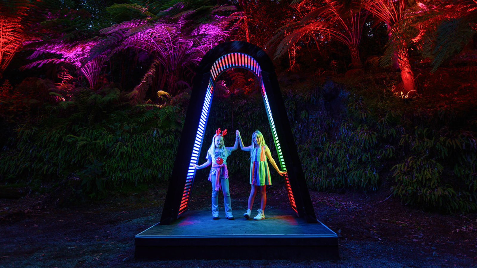 Follow the illuminated trail through a magical forest of light on the Cathedral Gardens path.